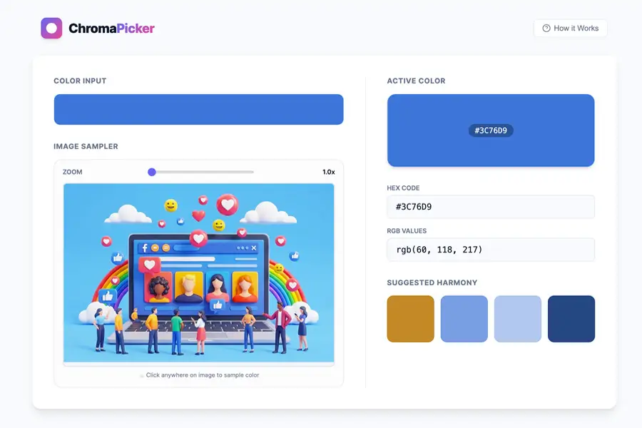 Pull colors from any image and get matching color suggestions instantly. Keep your branding consistent even if you are not a designer.